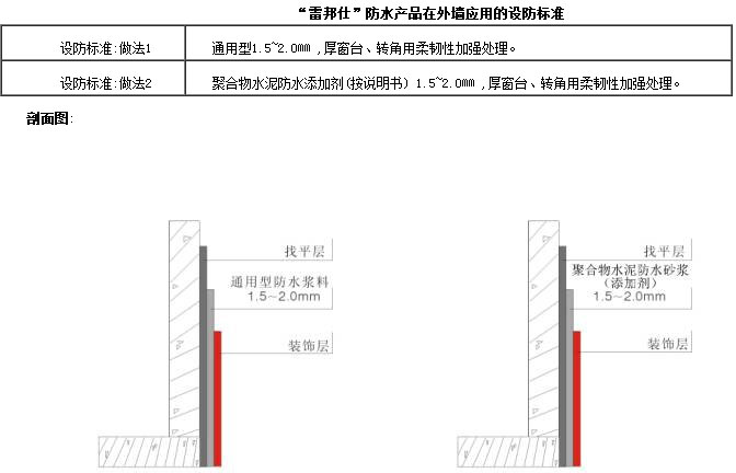 外墻面的防水應根據外墻的高度,當地的基本風雨,墻體材料以及墻面裝飾材料等因紊,選擇設防標準。