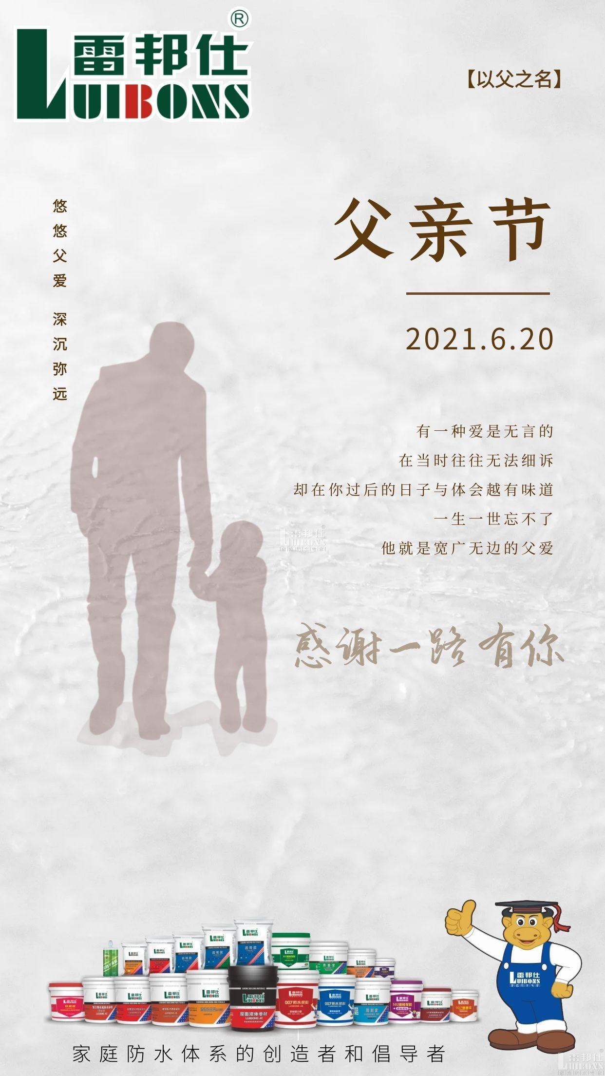 他或許平凡普通,但總是笑容溫暖 他或許嘮嘮叨叨,但總是細心關懷 今天,給爸爸送去節日的問候,祝愿天下的父親們節日快樂! 雷邦仕防水和你一起守護他的健康!